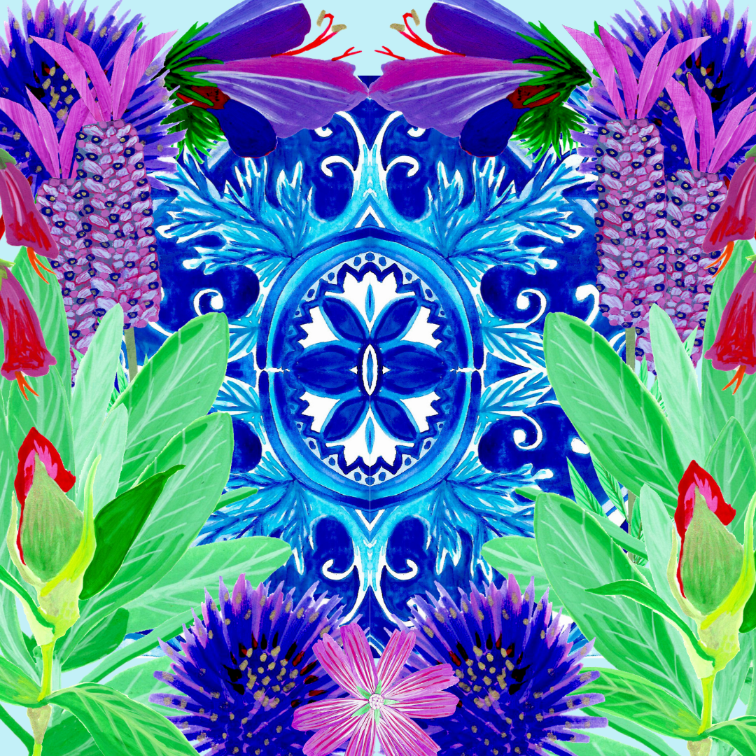 I couldn´t resist adding a bit of Portuguese hand painted tile design into the mix and of course lavender grows in great abundance all over the place at this time of year.